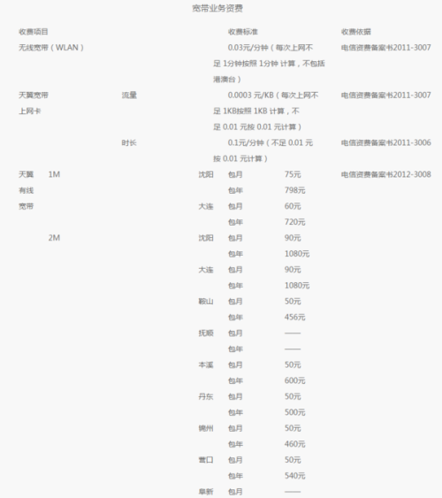 4、在寬帶套餐列表中選擇感興趣的套餐,并查看詳細的收費標準。